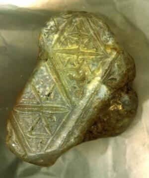 "Вот, например, халцедон, найденный одним ямальским шаманом и переданный тюменскому исследователю. «Именно на халцедонах найдены те письмена, которые приписывают это гиперборейцам, т.к. они нанесены на мягкий халцедон, а это сделать можно только суперсовременным лазером. Такой технологии в наше время не существует», - говорит Павел Ситников.