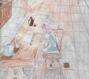 Любимым занятием стало рисование зверюшек — и больше всего зайцев. В ее рисунках пушистые зайцы очеловечивались, обзаводились именами, назывались эсквайрами, приодевались в модные голубые камзолы с панталонами, женились на симпатичных зайчихах в кокетливых чепчиках и кружевных фартучках, заводили босоногих зайчат в коротких панталошках и красных курточках, старились, начинали носить очки…