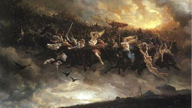 В те далёкие времена по Европе бродило поверье о так называемой Дикой Охоте. Мол, иногда наступает время, когда над грешной землёй проносится отряд призрачных всадников с адскими псами (нередко их возглавляет никто иной, как старый германский бог Вотан, он же Один). Всё это, как и положено, сопровождается ураганом, молниями и громом, в котором слышится топот коней. По пути мертвецы-призраки сеют смерти и болезни, поэтому в такой день лучше сидеть тихо дома и не высовываться. Ежели кто-то всё-таки попадётся всадникам по пути и взглянет им глаза, тот потеряет не только тело, но и душу, которая отправится прямиком в ад.