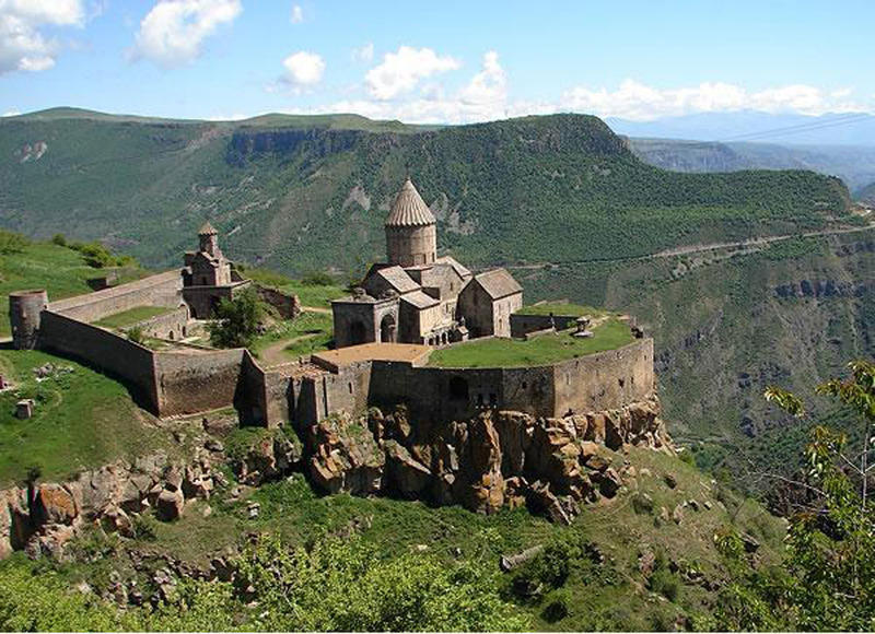 Татевский монастырь расположен у села Татев в 250 км от Еревана, на утесе, обрывающемся в ущелье реки Воротан, ныне не действует, но открыт для туристов.