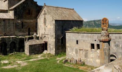 Второй раз я была в Татеве в 2003 г., тогда почти все уже было восстановлено. Мы гуляли по крышам подсобных помещений, откуда очень красивый вид на окружающую природу и территорию монастыря. К большой церкви примыкает гробница св. Григора Татеваци, руководителя университета, философа, педагога. Интересна также Маслодавильня Дзит Ан XVII в., где сохранился массивный жернов, с помощью которого отжималось масло из кунжута, конопли, горчицы, репейника, мака, клещевины и льна.