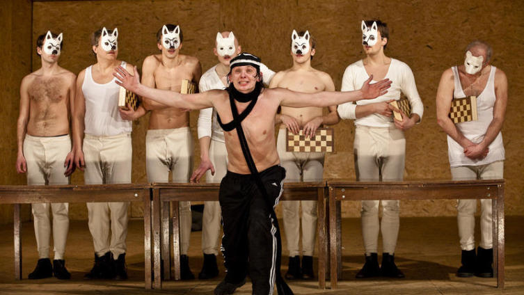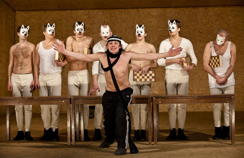 Актеры поют и во время действия, и в качестве отступлений. Поют сольно или хором. Мужские хоры на Руси являются символом особой лиричности. Мол, если уже мужики запели хором, значит, душа вывернулась наизнанку, наступил момент полной душевной искренности и пофигизма. Или вывернутости, если сказать точнее. У нас уважают поющих. Как и курящих. Все работают, а он курит или поет. Все к нему за это с уважением. Пусть не работает. Он же поет. Или курит. Уважают у нас поющих (это о спектакле) и курящих (к спектаклю заявление не относится).