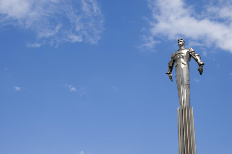 На удивление, все было совершенно спокойно, по Горького шли в сторону центра люди, не так много, как до Пушкинской площади, но все же шли, при этом, также как и мы, из переулков и проходных дворов появлялись все новые и новые лица. В общем, к Центральному телеграфу подошла уже достаточно мощная толпа. В этот момент над улицей появился то ли небольшой одномоторный самолет, то ли вертолет, сейчас вспомнить точно не могу, помню только, что из него разбрасывали портреты Гагарина. На небольшом кусочке красной бумаги в черном цвете был напечатан первый космонавт Земли, видно, очень спешно печатали, потеки краски свидетельствовали об этом. Какой-то булавкой, выделенной кем-то из девчат, я прикрепил этот портретик к лацкану своего пальто.