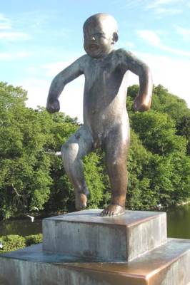 Здесь же, на мосту, и скульптура рассерженного, плачущего мальчика, которая стала символом Осло и изображается на открытках и сувенирах. Фигурка совсем маленькая — в натуральную величину. Можно пройти, не заметив ее, но у скульптуры всегда останавливается много туристов — фотографируются. В результате левая рука отполирована до блеска — дотрагиваются, чтобы родить ребёнка. На мосту расположились 58 скульптур — от главных ворот до фонтана.
