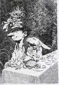 Действительно у Кэрролла были тяжелые взаимоотношения со всеми иллюстраторами (которых, кстати, он сам выбирал). Тенниел даже в сердцах как-то сказал: "Доджсон невозможен! Этого зазнайку-ментора больше недели нельзя вытерпеть!" Тем не менее, пишут, что во многом благодаря сотрудничеству с Тенниелом появилась глава о знаменитом безумном чаепитии. К тому же, несмотря ни на что, иллюстратором "Зазеркалья" Кэрролл снова выбрал Тенниела. К тому же тот не остался в долгу - так из второй сказки исчезла глава о шмеле в парике, потому что художник написал, что не видит, что там иллюстировать. И Кэрролл прислушался, хотя лично мне глава кажется вполне иллюстративной!