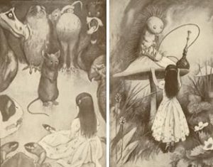Елена Бойд, да, рисунки Тэнниела прикольные, и диснеевский мультик во многом основан на них, но самому Доджсону они не слишком понравились. Всё же он согласился и на такие. А вот против работ другого своего прижизненного иллюстратора, Эрика Кинкейда, он очень резко запротестовал. При том что Кинкейд просто срисовал Алису с фотографий самой Алисы Лиддел, проявив себя таким образом как фотореалиста.