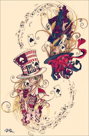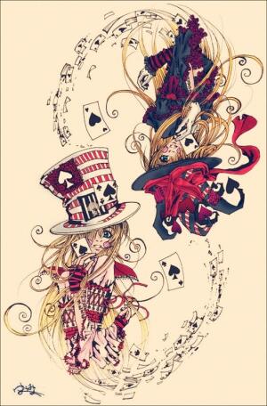 Кстати, а почему её изображают блондинкой? И про Шляпника Кэролл не писал, что тот был непременно карлик. В нашем мультике он тощий и долговязый.