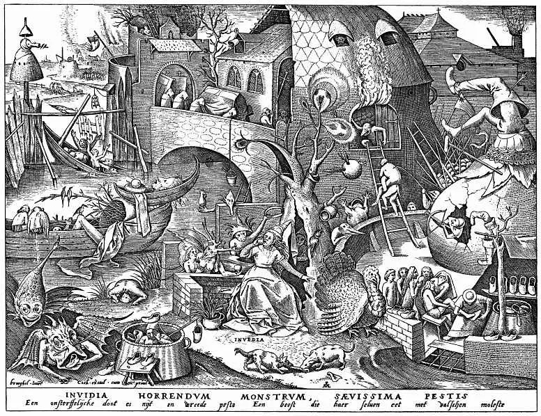 Следующий грех, в каком-то смысле противоположен гордыне — зависть. Завистливый человек не приемлет успеха других людей и хочет не столько стать успешнее них, сколько чтобы другие стали неблагополучными: богатые стали бедными, счастливые — несчастными. Из зависти человек может много зла сделать другому — от мелочей до серьезных преступлений.