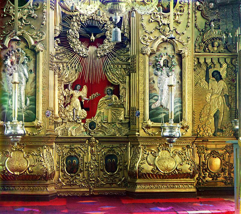 Сама перегородка, темплон, на Руси могла быть двух видов: перекрывающая только центр, сам алтарный проем; или — весь храм.