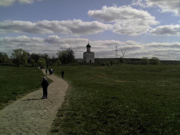 Не знаю, как предпочитал князь, а сейчас от Боголюбова до храма идут пешком. Пару километров через поле. Идут все, и для туристических автобусов подъезда нет. В первое наше посещение мы добирались общественным транспортом. Один из городских автобусных маршрутов идет через весь город до Боголюбова и дальше. Едем до Боголюбовского монастыря, оттуда минут 15 пешком. Переходим железную дорогу и вперед, к храму.