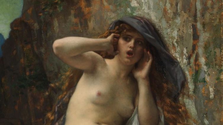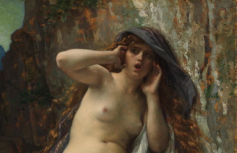 Одна из его картин — «Эхо». На ней — полуобнажённая рыжеволосая особа явно женского пола сидит посреди дикой природы на скале и как бы кому-то что-то кричит. Надо полагать, что особа — не из простых смертных: простые смертные голыми на скалах не рассиживают и не кричат просто так.