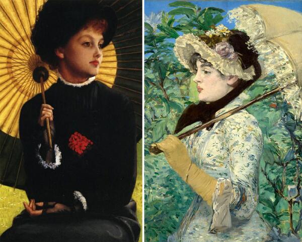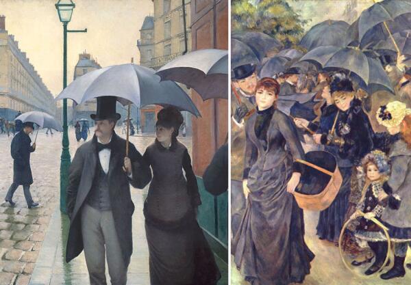 Во второй половине 19 века расцветка зонтов становится более однотонной строгой, что легко заметить по картинам того же Ренуара. В это же время возникают такие необычные модели, как зонт-шляпа с полями, отводящими воду, или зонты с громоотводом и заземлением!
