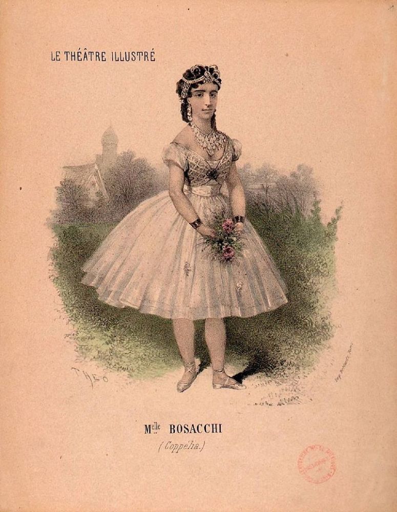 Первой Сванильдой стала шестнадцатилетняя итальянка Джузеппина Боццакки (Giuseppina Bozzacchi, в некоторых источниках Джозефина Бозаччи), обучавшаяся во Франции. Премьера прошла с успехом, на спектакле присутствовал император Наполеон III. Партия Сванильды стала блестящим дебютом и одновременно лебединой песней юной балерины. Началась Франко-прусская война. В осаждённом Париже Джузеппина, ослабев от голода, тяжело заболевает и умирает в день своего семнадцатилетия.