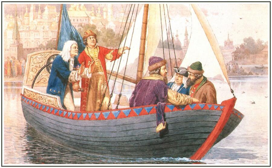 Царевич начал учиться управлять судном вначале на Яузе, но так там было тесно лавировать и ботик с трудом мог развернуться, Петр приказал перевезти его назад в Измайлово на Просяной пруд. Именно там он овладел управлением судном, обучился морским терминам и узнал много интересного о Голландии и больших кораблях, которые там строят. Там же он понял, что корабли сами по себе не растут, их надо научиться строить, и только после этого Россия сможет попасть в число ведущих морских держав.