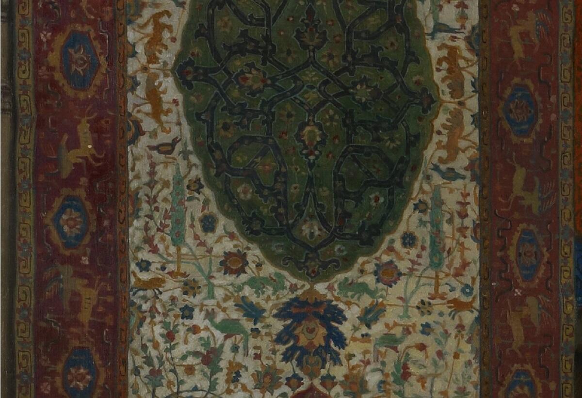 Надо полагать, что художника изумил труд его собратьев по художественному ремеслу, и он дотошно воспроизвел рисунок ковра.