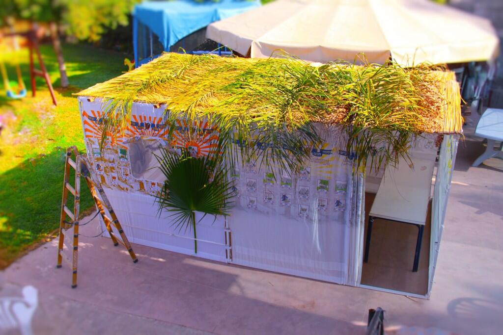 Во-вторых, сукка должна находиться под открытым небом. У сукки не должно быть надежной крыши. Покрывают шалаш ветками или соломой. Это позволяет днем укрываться под такой кровлей от солнца. Ночью же через крышу сукки должны быть видны звезды. Суккот — начало сезона дождей. Так вот крыша шалаша не должна быть слишком плотной, чтобы капли дождя проникали вовнутрь этого временного жилья. Поэтому сукку нельзя ставить ни под навесом, ни под раскидистым деревом.