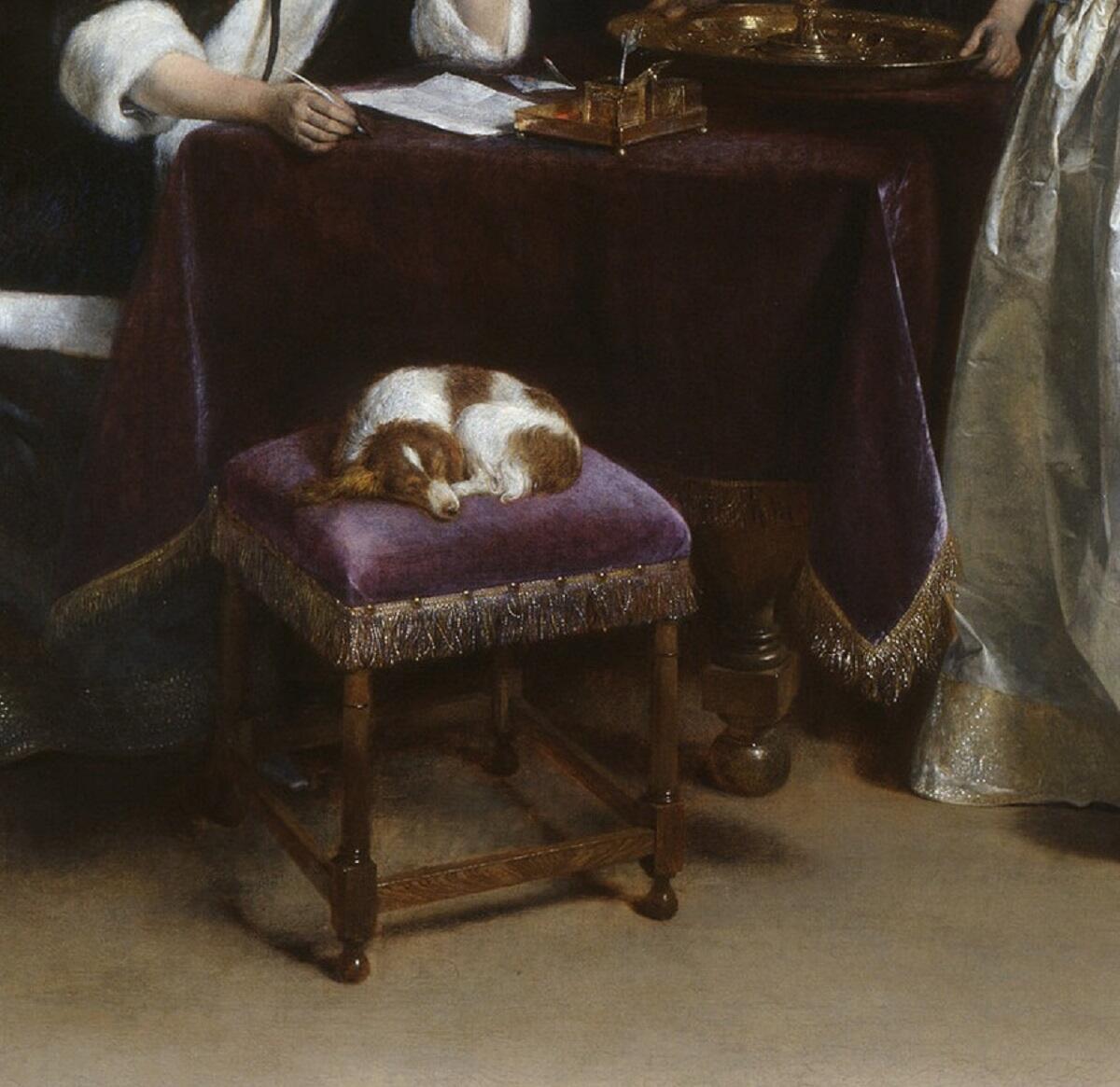Картина «Письмо» — семейный портрет всех молодых Терборхов, в том числе — песика…