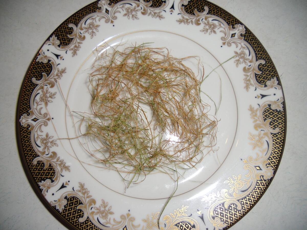 Отбиваем и обминаем иглы до тех пор, пока не получится пушистый комочек сосновых волокон. И вот оно, чудо! Перед нами волокна сосны.