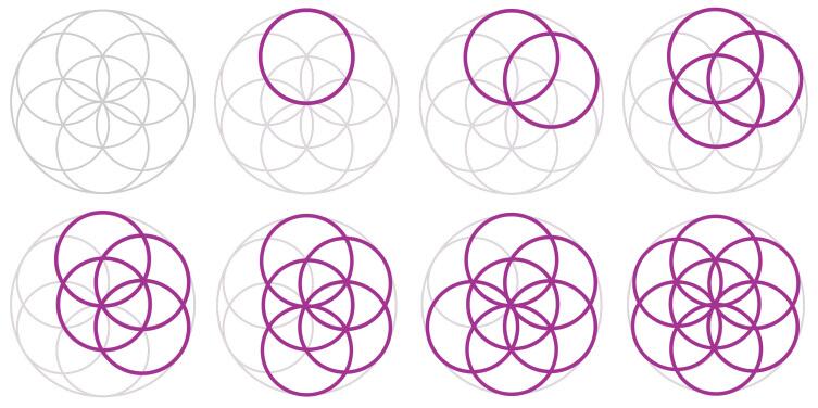 Помимо явной символики, в мандале «Цветок жизни» зашифрован ещё один важнейший для многих древних культур символ — «Древо Жизни». Он составляет основу священной геометрии: в него заложена удивительная, сложная синхронность и согласованность. То, как удивительно точно накладываются друг на друга формы (круги), завораживает взгляд.