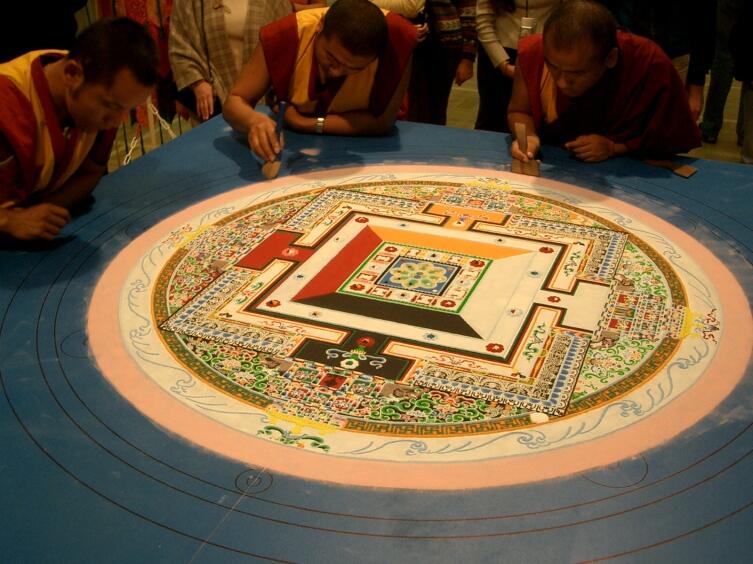 Первый находили на артефактах XIII века, этот символ в самых разных культурах, религиях почитался значимым, центральным. Второй упомянутый символ, имеющий общее с «Цветком жизни» — известнейшая буддистская мандала Калачакра. Это изображение космоса, которое так часто украшает храмы.