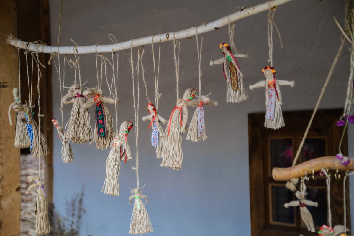 Нитяные куклы вызывают в памяти мартинички из Болгарии. Они непременно парные: одна фигурка делается белой, другая — красной. А соединяются они шнурком, в котором переплетены нити обоих цветов. Это — символика зимы и весны, снега и солнечного света. А ещё — мужского и женского начал, которые разделены, но одновременно взаимосвязаны, о чём говорит двуцветный шнурок. Своеобразный славянский аналог китайского круга инь-янь.
