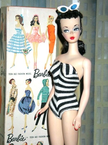 Надо сказать, что идея не была супероригинальной. В Германии уже производилась подобная кукла Лилли, которую Рут и взяла за образец. В 1959 году публике были представлены две первые модели куклы Барби (названные, как нетрудно догадаться, в честь дочери) — блондинка и брюнетка, облачённые в чёрно-белые полосатые купальники.