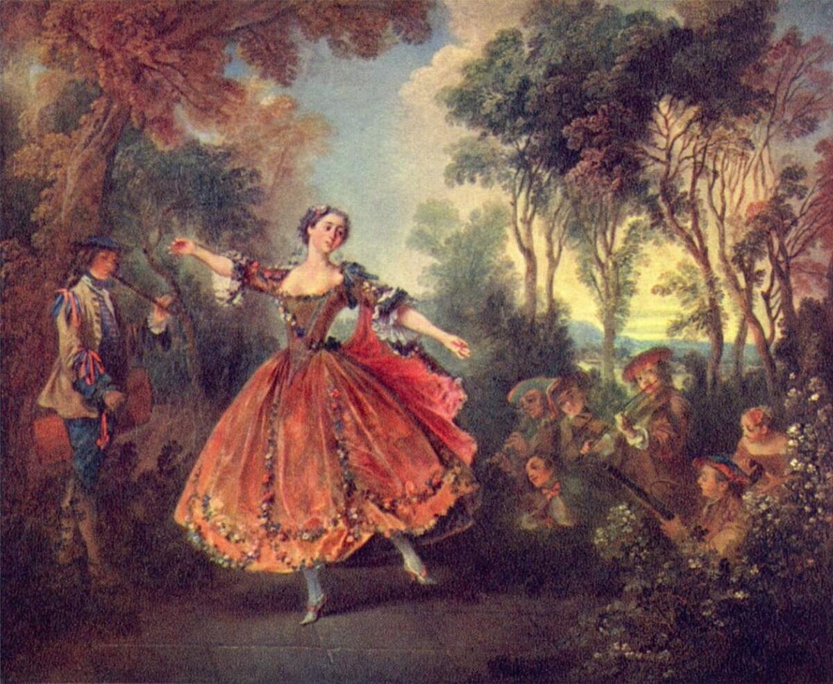 Среди его работ есть четыре картины с одинаковым названием: «Танцует мадмуазель Камарго». Три из них различаются размером, цветом платья, цветовой палитрой и изображением природы. Такое впечатление, что автор сделал несколько копий: главная фигура скопирована без существенных отличий.