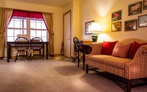 Перед кухаркой на стене — поставец, небольшая полка для посуды. На ней аккуратно расставлены глиняные горшки: самый большой — наверху, видимо, его употребляют нечасто, горшки поменьше — на средней полке, на ней же висят две металлические кастрюли с дужками (судя по всему, их подвешивают над огнем в камине). Слева на поставке стоит декоративная расписная тарелка, может быть, ее не используют для сервировки стола.