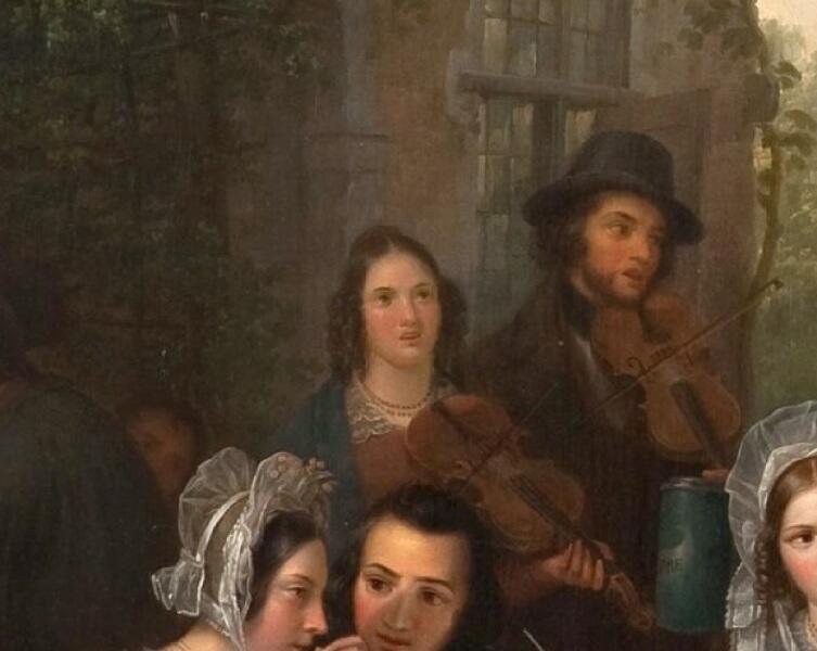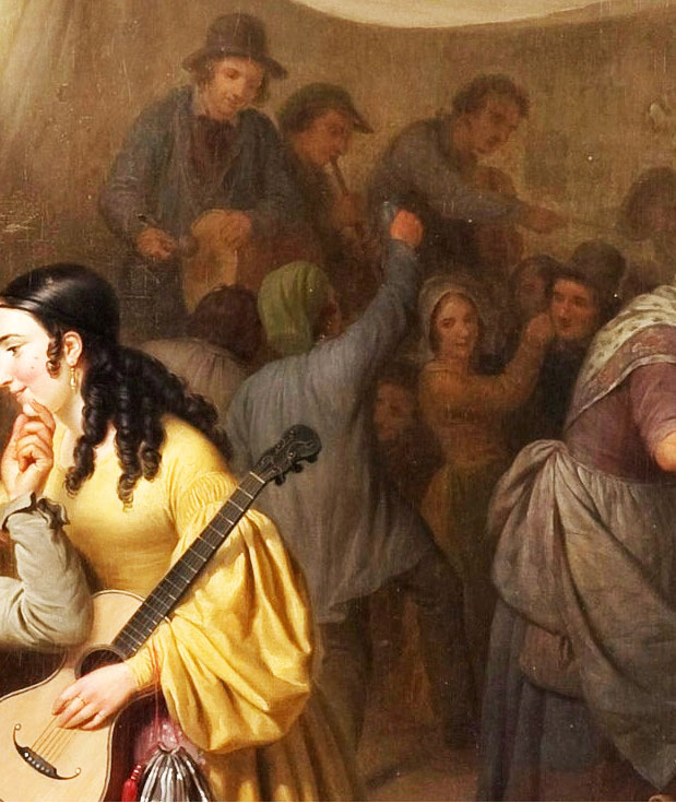 Слева на заднем плане, ближе к центру стоят два скрипача: возможно, что их пригласили горожане (а может быть, и привезли с собой).