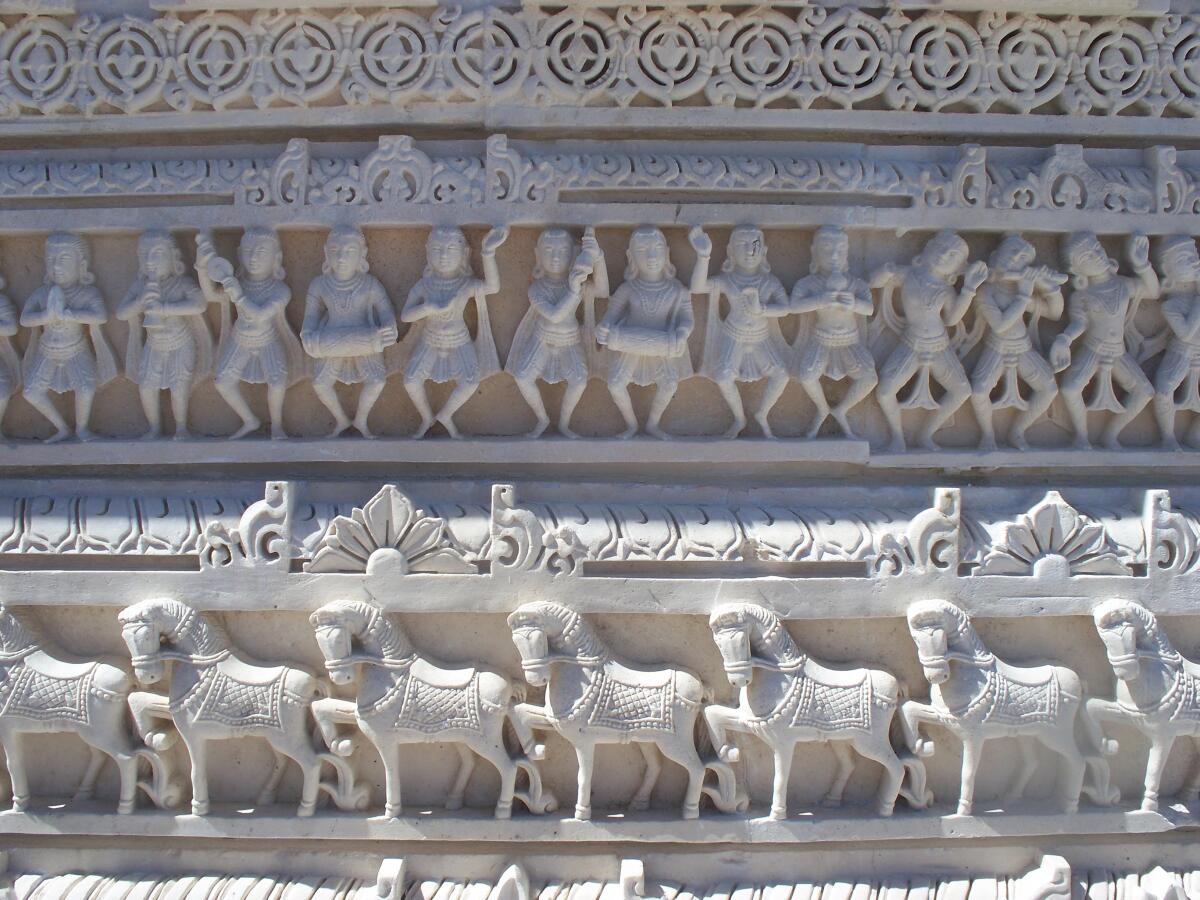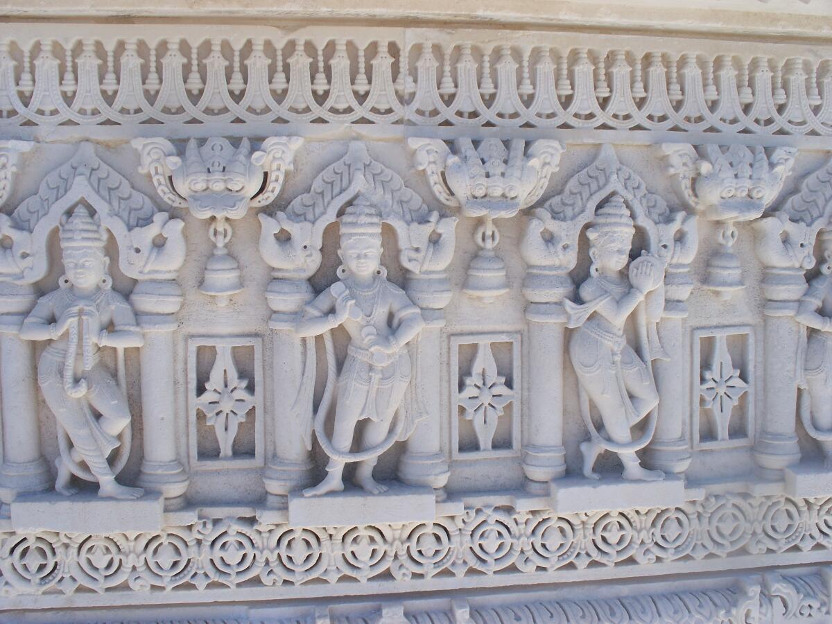 Напротив Мандира стоят красивейшие белокаменные ворота, не уступающие по тончайшей работе самому храму.