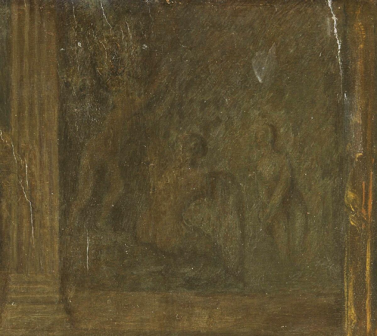 Сюжет картины описывает действие, происходящее в богатом доме: на второй этаж ведет широкая лестница, под потолком — люстра. За столом, покрытым бархатной скатертью, сидят мужчина и женщина с картами в руках (судя по одежде, она — хозяйка, он — гость). На втором плане — стена, открытая небольшая дверь. Над дверью видна коротенькая балюстрада — как продолжение лестницы, колонна с каким-то неясным рельефом и закрытая росписью стена. На фреске просматриваются фигуры купальщиц. За спиной гостя — ниша (что в ней — совершенно неясно, очень может быть, что там — кровать). Над нишей — большая картина в резной золоченой раме.