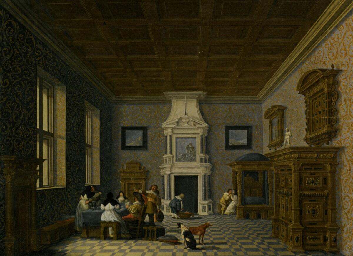 «Кавалеры развлекаются с монашками в роскошном зале дворца»