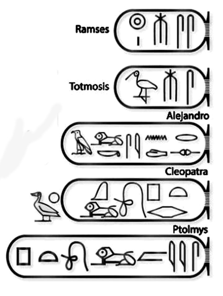 Но возможно, писцы транскрибировали только иностранные имена? В 1822 году в руки Шампольону попало несколько картушей, срисованных с более древних египетских памятников. Эти памятники были воздвигнуты еще до завоевания Египта Александром Македонским, поэтому в картуши были заключены традиционно египетские имена фараонов.