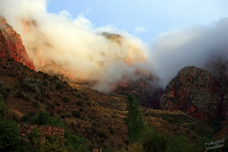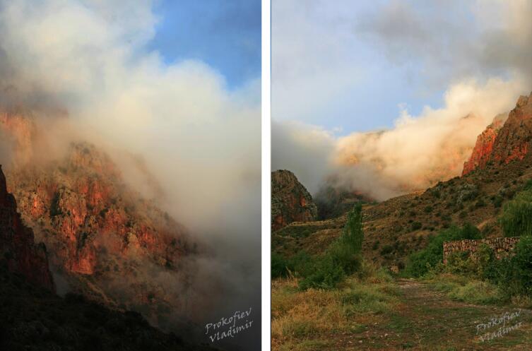 Особый колорит добавляла погода: недавно закончился дождь, цвет красных скальных пород стал ярче и свежей, а туман и облака, которые гуляли вдоль склонов, были похожи на дым от горячих углей. Волшебное зрелище!