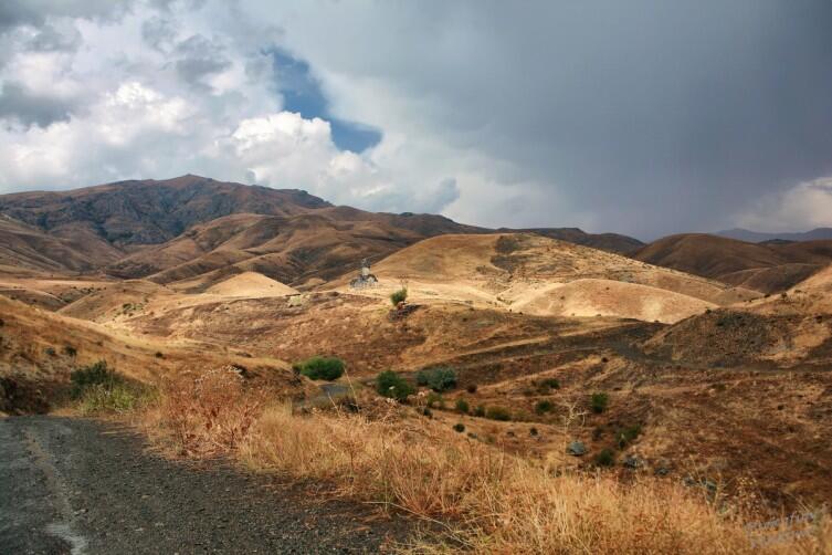 Из Еревана сюда ведут две дороги. Одна — вдоль озера Севан через древний Селимский перевал, другая — вдоль границы с Турцией, огибая гору Урц (ту самую, где на склоне стоит монастырь Карапет).