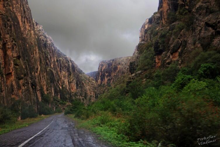 По этому ущелью раньше проходила старая дорога на курорт Джермук. Сейчас по ней до Джермука можно только пешком дойти, но кому это надо — новая хорошая дорога идет по другой стороне ущелья.
