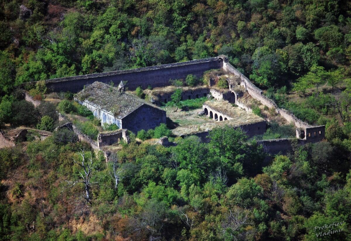 Это Татевская Пустынь, расположенная на плато в долине рек Воротан и Татев. Интересна не столько она сама, сколько то, что построена она была во второй половине XVII века по замыслу католикоса Акопа Джугаеци. Казалось бы, Армения в это время уже и не существовала как самостоятельное образование. Но Церковь существовала и продолжала действовать.