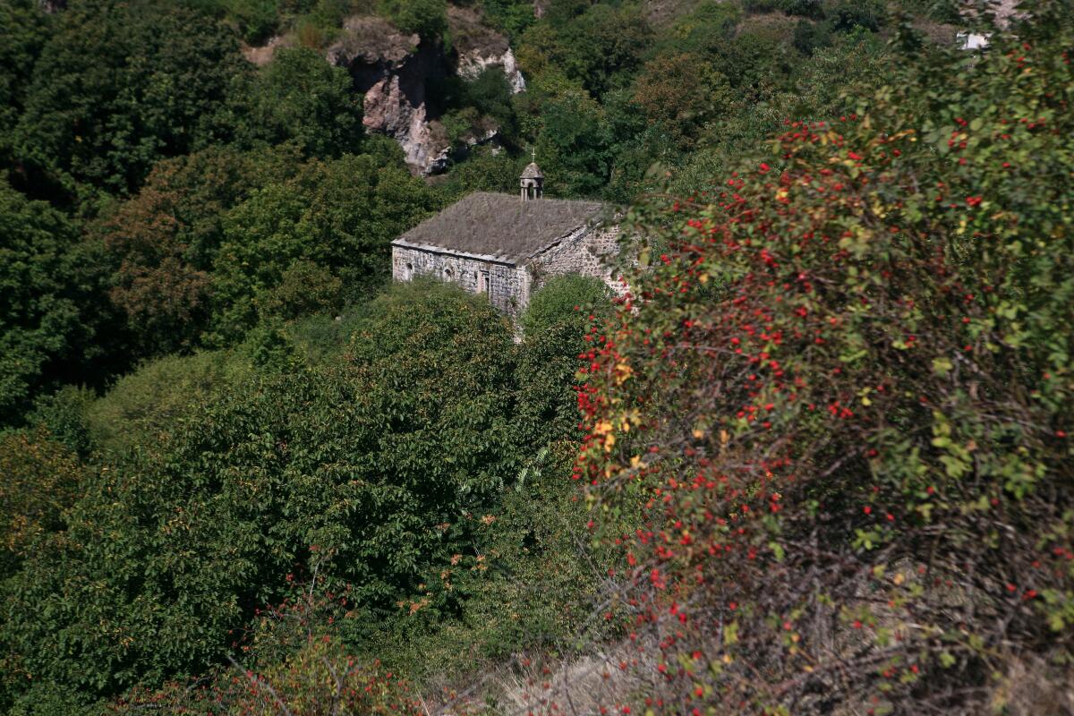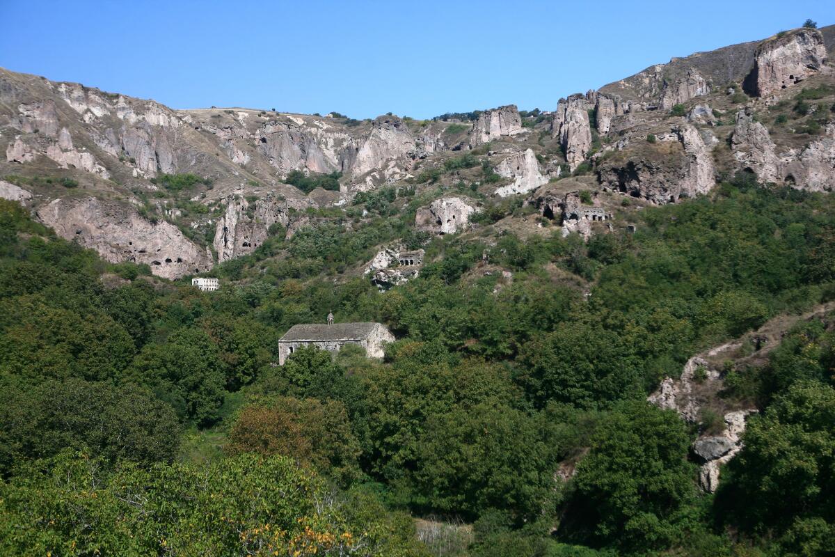 Пещерный Хндзореск расположен в глубоком ущелье, наполненном старыми скальными останцами причудливых форм и размеров.