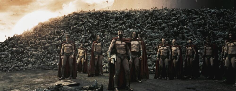 Даже голос за кадром, принадлежащий персонажу Дэвида Уэнэма, не может претендовать на достоверность, ведь целью героя является сплочение нации против внешнего врага, а не историческая объективность. В частности, это касается «Бессмертных», которые вовсе не были демонами, а живыми людьми, профессиональными воинами персидской армии. Однако с расистской точки зрения спартанцев, их три сотни сражались не с батальонами прекрасно обученных бойцов, но с полчищами уродливых монстров.