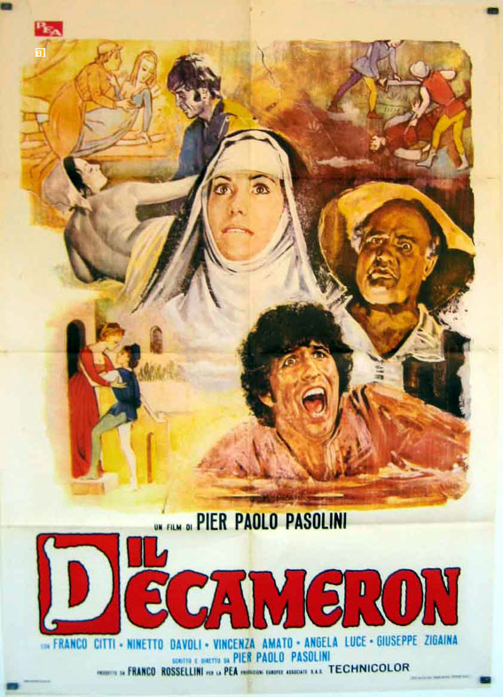 Пазолини, само собой, не мог взять для экранизации знаменитый «Декамерон» Джованни Бокаччо в изначальном виде. Ему пришлось пожертвовать абсолютным большинством историй. Книга же, написанная Бокаччо в 1352—1354 годах, содержит сто новелл, из которых Пазолини использовал для фильма лишь семь.