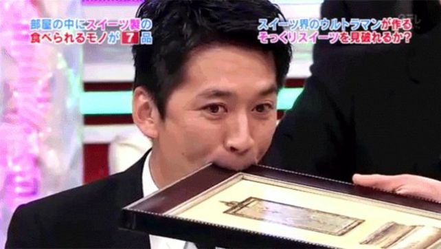 Весьма «смотрибельное» по сей день шоу на японском телевидении связано с подменой обычных вещей на точно такие же, но сделанные из сладостей. Например, из темного и белого шоколада. Участники должны были каким-либо образом на расстоянии угадать, что съедобно, взять выбранный предмет и откусить. Получалось очень комично, когда участники шоу пытались откусить дверные ручки, обувь, посуду, зажигалки, компьютерные мышки, книги и так далее. Среди всего этого бывали и сладкие подделки, но чаще под общий хохот человек начинал грызть настоящую несъедобную вещь.