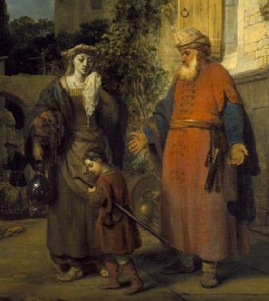 Этот эпизод — изгнание — изобразил Гербранд Ван ден Экхоут. Перед зрителем: старец с седой бородой — Аврам, женщина с мальчиком — Агарь со своим сыном Измаилом, на крыльце — Исаак (сын Сары). Сара тоже почти присутствует в сюжете картины: в проеме двери видна ее рука и есть намек на ее силуэт.