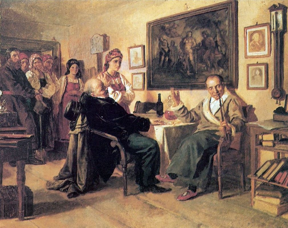 Еще более сложной оказалась ситуация с простым народом. В сельской местности фамилию имел только барин. Все крестьяне воспринимались им как скот. А скот, как известно, получает клички. Прозвища были и у крестьян. Типа: Ванька дурак, Митька козел, Санька баран, Лука хромоногий, Сенька лупоглазый, Степка кривой, Кузька горбатый и так далее. Дети получали «уточнение» от родства. Поскольку не было в семье детей с одинаковыми именами, то вопрос с крестьянами в части их «опознаваемости» решался предельно просто. Скажем, так: Гришка — сын Ваньки дурака. Ну и у остальных детей в том же духе. Часто барину даже не требовалось выдумывать прозвища и клички крестьянам — он брал те, что слышал в деревне.