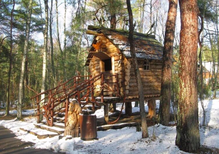 В русских народных сказках Баба Яга выступает в роли безобразной и злой старухи-колдуньи, разъезжающей по всему свету в ступе и заметающей следы помелом. ПМЖ Яги — избушка на курьих ножках, стоящая в глухом лесу, что находится в тридесятом царстве за рекой Смородиной.