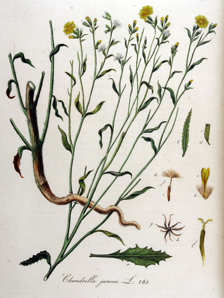 «На корнях хондриллы гусеницей моли sclagio образуются каучуконосные коконы („чехлики“), обычно собранные плотными колониями до 25 шт. на каждом растении, или расположенные вдоль корня на глубине 10−12 см…».