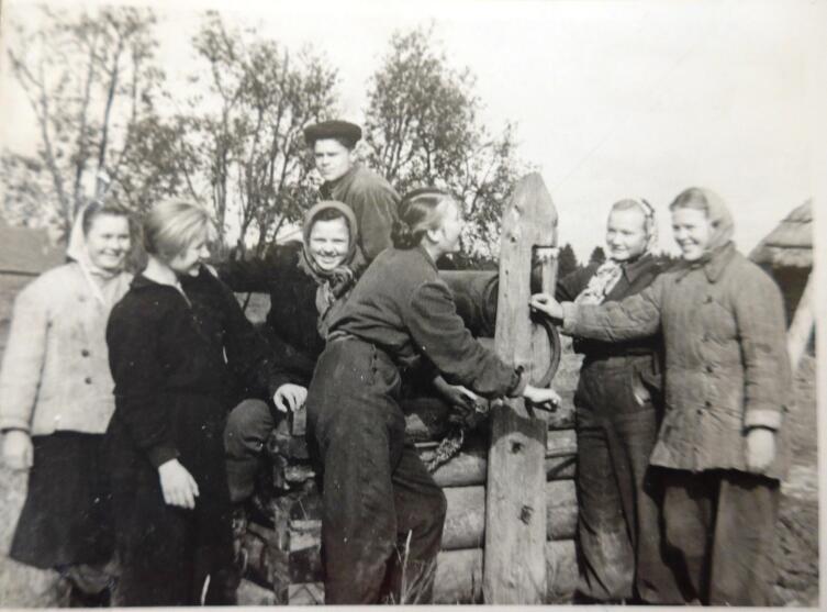 Как там было хорошо и весело работать вместе со второкурсниками! 60 лет прошло, а воспоминания сохраняются. Жаль, что в те годы не было еще у нас фотоаппаратов и не осталось снимков. А вот из поездки на уборку картофеля есть старый снимок: на полях Волосовского района группа первокурсников осваивала сельскую жизнь.