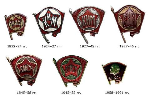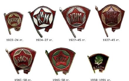 В 1945 году название организации заменили на привычное ВЛКСМ, и дизайн значка был также изменен. До 1958 года была заменена лишь аббревиатура в центре звезды, а после этого появился знакомый профиль В.И.Ленина и надпись ВЛКСМ. Круг и звезду со значка убрали.