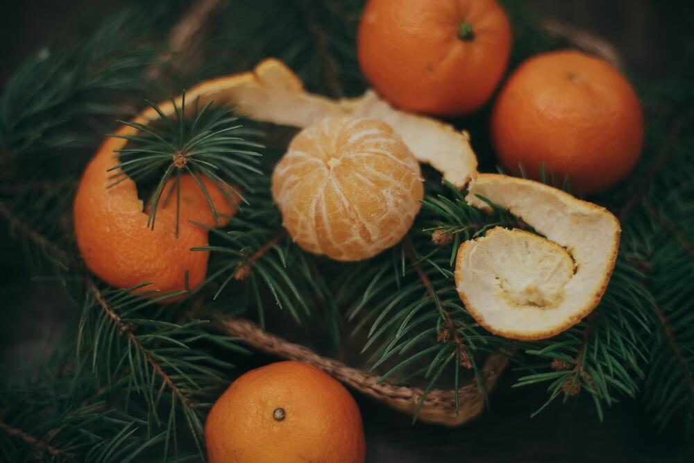 Чтобы гости не узнали о сюрпризе, оборачиваем ломтики апельсинов и мелкие фрукты тонкой разноцветной гофрированной бумагой (продается в книжных магазинах и канцелярских бутиках для поделок). Бананы можно не оборачивать, поскольку внешне они похожи в кожуре на елочные игрушки и вряд ли гости догадаются о том, что они настоящие. Для маскировки повесьте электрическую гирлянду, ленты мишуры и обычные елочные игрушки.