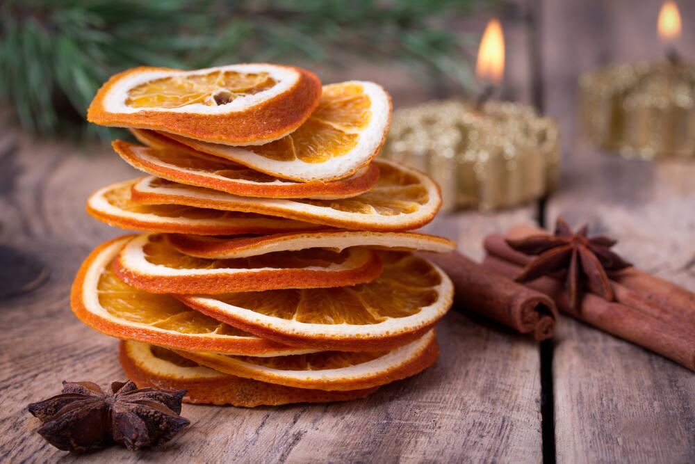 Апельсины надо нарезать кружочками. Чтобы из них не вытекал сок, делаем так. Каждый кружок с обеих сторон опускаем плашмя в сахар или в сахарную пудру и даем потом хорошо высохнуть. Получится весьма эффектно — на елке будут висеть дольки апельсинов, как бы осыпанные инеем. Ну, а прочие мелкие фрукты можно вешать целиком.