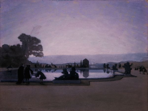 В начале 1900-х годов Бенуа создает целую серию акварельных рисунков, посвященных старому Петербургу и пригородам столицы Российской империи. Это не прославление деяний эпохи правления династии Романовых, а неиссякаемая любовь к истории и исторической обстановке волшебного города и пригородов, что характеризует Бенуа опять же как тонкого реалиста и знатока давно ушедшей эпохи.